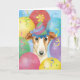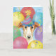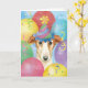 Feliz aniversário com este design bonitinho com um sorridente e festeiro cachorrinho Borzoi vestido rodeado por balões coloridos, confetti e Streers.