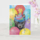 Feliz aniversário com este design com um filhote de Schipperke fofo, vestindo festas, rodeado de balões coloridos, confetti e balizers.
