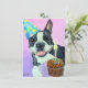Um feliz Terrier de Boston deseja-lhe um excelente de aniversário.