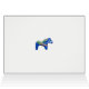 Este cartão combina desenhos, aquarela e um cavalo de madeira desenhado, esculpido e pintado por Julia Persson-Morrill