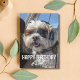 Birthday card featuring a photo of dog pilot wearing aviator glasses and aviator headphones while sitting in the cockpit seat of an airplane. On front of the card it begins with a greeting that says "HAPPY BIRTHDAY Charlie" Inside are birthday wishes that say “Happy Birthday, Captain! May your day be all clear skies, strong coffee, and zero turbulence!" Perfect for a pilot, flight attendant, flight instructor, aviation enthusiast, or traveler. Personalize it with your own photo and birthday wishes to make it extra special or just use our pre-filled message.