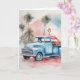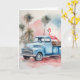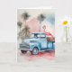 Watercolor flamingo no caminhão azul retrô com palmeiras para aniversário humorístico. Todo texto é editável.