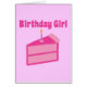 Esta design de aniversário divertida apresenta uma fatia deliciosa de bolo de aniversário rosa carregado com glacé e uma vela acesa! Esta design é perfeita para uma festa de aniversário celebrando o dia especial de qualquer garota! Feliz aniversário!