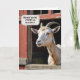 A farm goat peeking out of a rustic barn window with a speech bubble for a getting old birthday.
