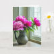 Buquê rosa de peônias em uma jarra de safena por uma janela brilhante. Todo o texto pode ser alterado.