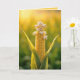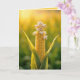 Uma espiga de milho se posiciona em um campo iluminado pelo sol, suas amêndoas são um amarelo vibrante e tocaram com uma inesperada floração de pipoca