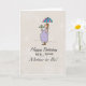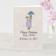 Feliz Aniversário para a mãe ficar grávida. Este cartão bonito mostra uma mãe cuidando do seu bebê batendo com um mini guarda-chuva. Perfeito para um chá de fraldas!