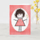 Cartão Birthday Stick Figure Girl On Red Gingham