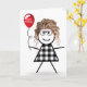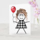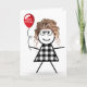 Garota com balão vermelho, cabelo e óculos em fundo branco para aniversário Texto em balão pode ser editado ou excluído. A cor de fundo pode ser alterada.