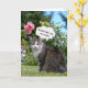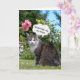 gato de mesa com flores e quadro de pensamento de bolhas para o aniversário geral
