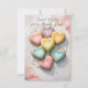 Apresentamos nosso delicioso cartão de cumprimentos personalizável, perfeito para enviar mensagens sinceras aos seus entes queridos. A frente do cartão apresenta um design charmoso com sete biscoitos em forma de coração lindamente decorados em cores pastéis, dispostos em um padrão visualmente atraente. Cada biscoito é adornado com detalhes intricados de glacê, adicionando um toque de elegância e doçura ao cartão. O texto na frente diz "Desejos Doces para um Dia Adorável!" em uma fonte graciosa e manuscrita, complementando perfeitamente o design caprichoso.