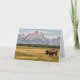 Esta foto caracteriza caminhadas selvagens solitários de um bisonte na frente da cordilheira de Teton em Jackson Hole, Wyoming.