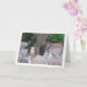Black Kitten no Rockery Greeting Card. Você pode personalizar este produto gratuitamente se quiser adicionar texto ou alterar a cor do plano de fundo.
