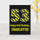 Cartão Black & Yellow Striped "53"; 53rd Birthday + Name