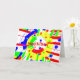 Um cartão de cumprimentos de aniversário para qualquer um com minha design de tinta vermelha, verde, azul e amarela espalhada. O texto diz "Parabéns".