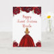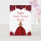 Este doce cartão de aniversário de 16 anos apresenta flores florais vermelhas brilhantes e uma bela princesa com cabelo loiro e um vestido elegante. Isto é perfeito para uma doce festa de aniversário de dezesseis.