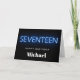 Legal cartão de 17 anos moderno com "17" em luzes néon azuis brilhantes contra fundo preto. Personalize com seu nome.