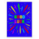 Um desejo de boa sorte explosivo! Que maneira maravilhosa de desejar boa sorte a alguém. As palavras "Boa Sorte" em cores brilhantes com uma explosão de cores brilhantes e estrelas.