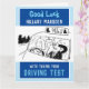Boa Sorte Ao Fazer O Teste De Condução. Foto divertida ilustrativa de um instrutor de condução ou examinador de condução nervoso. Personalize com sua escolha de nome. Boa sorte para um motorista aprendiz.