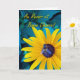 Uma abelha em uma Susan de olhos negros decora este cartão de adeus e boa sorte escrito em francês. Au Revoir et Bonne Chance! Dentro de texto: "Sentirei muito a sua falta. Até nos encontrarmos de novo." Arte, imagem e direitos de autor versos © Shoaff Ballanger Studios, 2022.