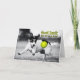 Belo cartão para qualquer um que está indo para um novo emprego, se mudando ou apenas arriscando em uma nova vida Foto engraçada de preto e branco de um cão terrível que está de olho na bola de tênis num jogo de busca. Foto cortesia de Emery Way.