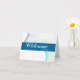 Este é fundo mínimo branco rústico com o cartão azul da boa vinda do crachá. Dê boas-vindas a seus empregados novos a sua equipe e faça-os sentir apreciados com este cartão alegre e à moda da boa vinda do empregado do negócio do teste padrão. Este cartão bem-vindo para empregados ou clientes novos na empresa.