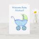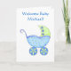 Cartão Boas-vindas Nome do Menino Personalizado Blue Bugg