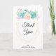Cartões de agradecimentos com um buquê bonito de aquarela pastel suculenta. Estas flores suculentas, folhas e galhos são cor-de-rosa macio e verdes. Uma estrutura geométrica de tendência com uma falsa borda de folha de ouro.