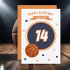 Bola de Basquete Feliz Cartão de Aniversário. Um moderno cartão personalizado de aniversário desportivo com uma bola de basquete, nome na fita e idade. Você pode alterar qualquer texto na placa e dentro na placa.
