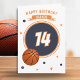 Bola de Basquete Feliz Cartão de Aniversário. Um moderno cartão personalizado de aniversário desportivo com uma bola de basquete, nome na fita e idade. Você pode alterar qualquer texto na placa e dentro na placa.