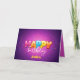 Celebre a cor do cheio com este cartão de aniversário atraente! Colocada contra um pano de fundo roxo rico, a palavra "FELIZ" irrompe em letras divertidas no estilo do balão - rosa, laranja, azul e amarelo - irradiando energia e alegria. Um spray de estrelas vibrantes rodeia o texto, enquanto o "aniversário" flui em uma elegante escrita branca abaixo. O nome na parte inferior — totalmente personalizável — aparece em negrito amarelo para um toque pessoal e divertido. Personalize o texto frontal e dentro ou escolha o download digital instantâneo para compartilhá-lo — perfeito para comemorações de última hora!