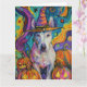 Abraçar o espírito do Dia das Bruxas com esta design encantadora que apresenta um cachorro fofo num chapéu de bruxa rodeado por abóboras entalhadas. Perfeito por adicionar um pouco de charme assustador às suas comemorações festivas.