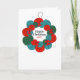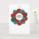 Wool pompon wreath Christmascard. Perfeito para aqueles que adoram tricô, assim como artes e artesanatos durante o feriado. O cartão inclui espaço para o ano e um dentro de mensagem personalizado. Para alterar o texto mostrado, clique em personalizar.
