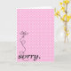 Grande "desculpe" em preto com margarida digital em fundo de bolinhas rosa e branco.