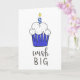 Cartão Bolo de aniversário com caligrafia azul escrita à