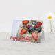 Cartão fresco do bolo de aniversário das bagas do verão. Vazio para dentro para sua própria mensagem.