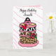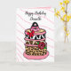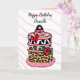 Bolo de cartoon bonito desenhado pela selva temido Bolo de aniversário, impressão em zebra, leopardo e girafa cor-de-rosa, rosas e arcos negros, vermelhos e brancos com carteira de aniversário personalizada.