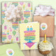 Um cartão de aniversário para o seu amigo de 30 anos. "Feliz Aniversário" está em cada camada do bolo com glacê decorativo rosa separando-as. Um fundo sutil de amarelo e azul ancoram o design. Cores brilhantes e um estilo gráfico ousado dão a este desejo de aniversário um clima festivo. Você também pode alterar "amigo" para personalizar para qualquer pessoa.