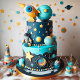 CARTÃO BOLO DE ANIVERSÁRIO DE CRIANÇA DE ESPAÇO E ASTRONA