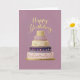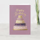 Cartão Bolo de Aniversário Roxo e Dourado com Andares Ele