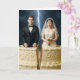 Uma noiva e um noivo num bolo de casamento gigante, separados por uma fenda dramática e um raio, criando um sentimento de tensão. A mensagem dentro pode ser alterada.