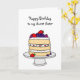 Cartão de aniversário para uma Irmã. Cartão de aniversário de sorvete desenhado à mão e bolo de comida anjo de morangos.