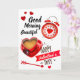 Cartão moderno do Dia dos Namorados com coração de amor despertador e xícara de chá. Perfeito para acompanhar o café da manhã surpresa na cama no Dia dos Namorados.