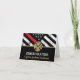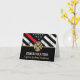 Este design apresenta uma bandeira de bombeiros com listras pretas e brancas, e uma fina faixa vermelha também. "Parabéns" e o crachá de bombeiro ficam acima do nome do bombeiro aposentado, tenente ou chefe. Celebre em estilo!