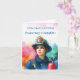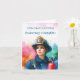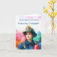 Este espantoso cartão de graduação gerado pela IA, que inclui uma mulher bombeiro orgulhosa no seu uniforme e boné de formatura.