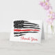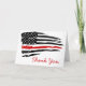 Cartões de agradecimentos fino da Linha Vermelha - bandeira americana nas cores do Pavilhão do Bombeiro, design a branco angustiado. Este obrigado de bombeiro que você é perfeito para obrigado de bombeiro, ou departamentos de bombeiros. COPYRIGHT © 2020 Judy Burrows, Black Dog Art - Todos Os Direitos Reservados. Cartões de agradecimentos de Bombeiros de Linha Vermelha fina