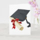 O chapéu do diploma da graduação e o pergaminho pretos do diploma rolaram acima e fixado com um carmesim vermelho coloriu a fita