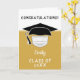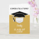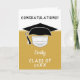 Boné de formatura Pandêmico com placa de máscara. Cartão de graduação engraçado com boné de formatura e máscara na cor do ouro. Adicione seu dentro de ano, nome e mensagem.