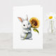 Este cartão de saudação encantador apresenta um belo coelho branco segurando um girassol vibrante, colocado sobre um fundo branco limpo. Perfeito para qualquer ocasião — aniversários, obrigado-você, bem-soons, ou só porque — este cartão irradia calor e alegria. Ideal para amantes de os animais e aqueles que adoram designs doces, simples e sentidos.