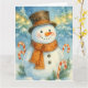 Cartão Boneco de Neve Alegre na Floresta de Pinheiros